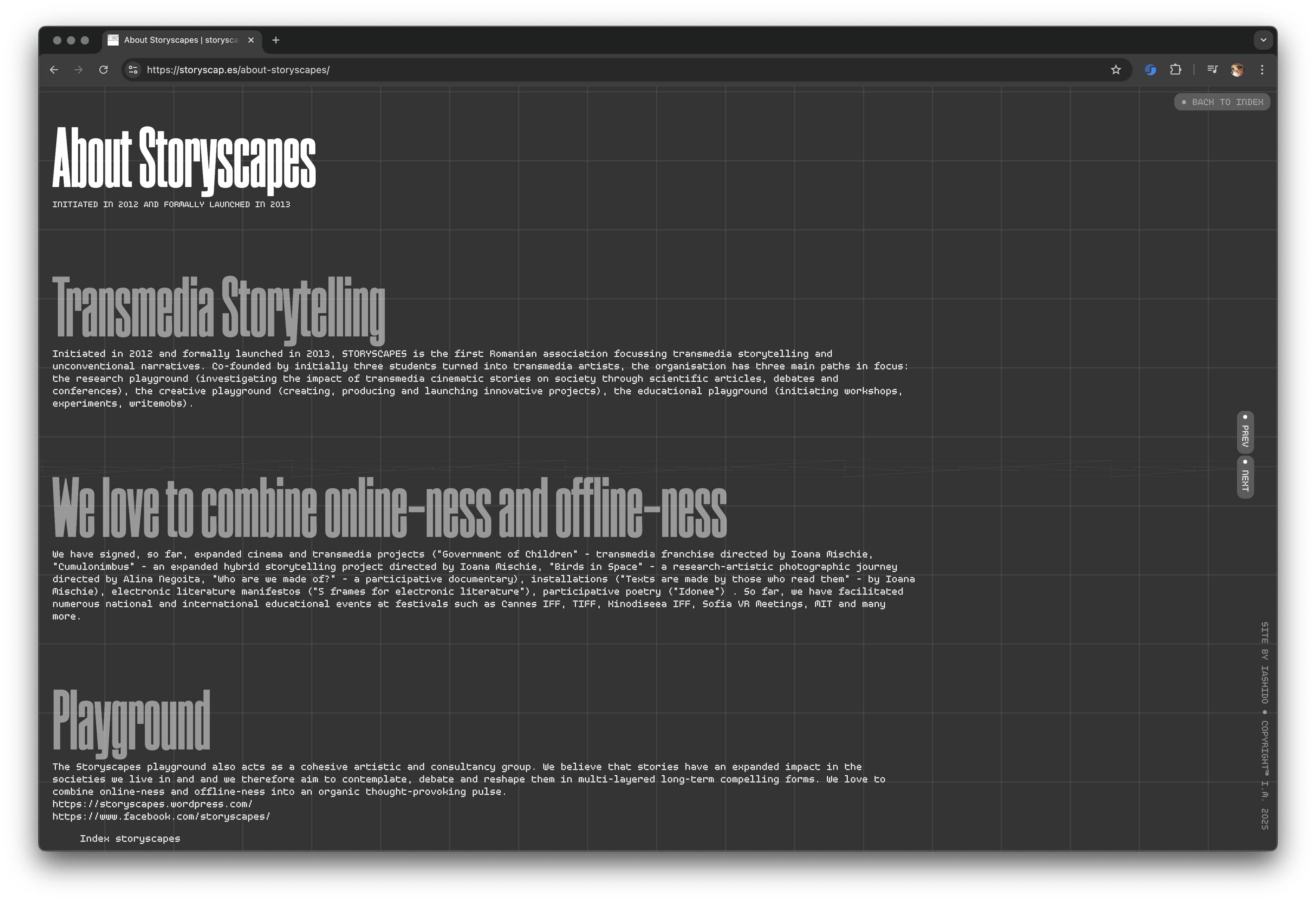 STORYSCAPES is the first Romanian association focussing transmedia storytelling and unconventional narratives