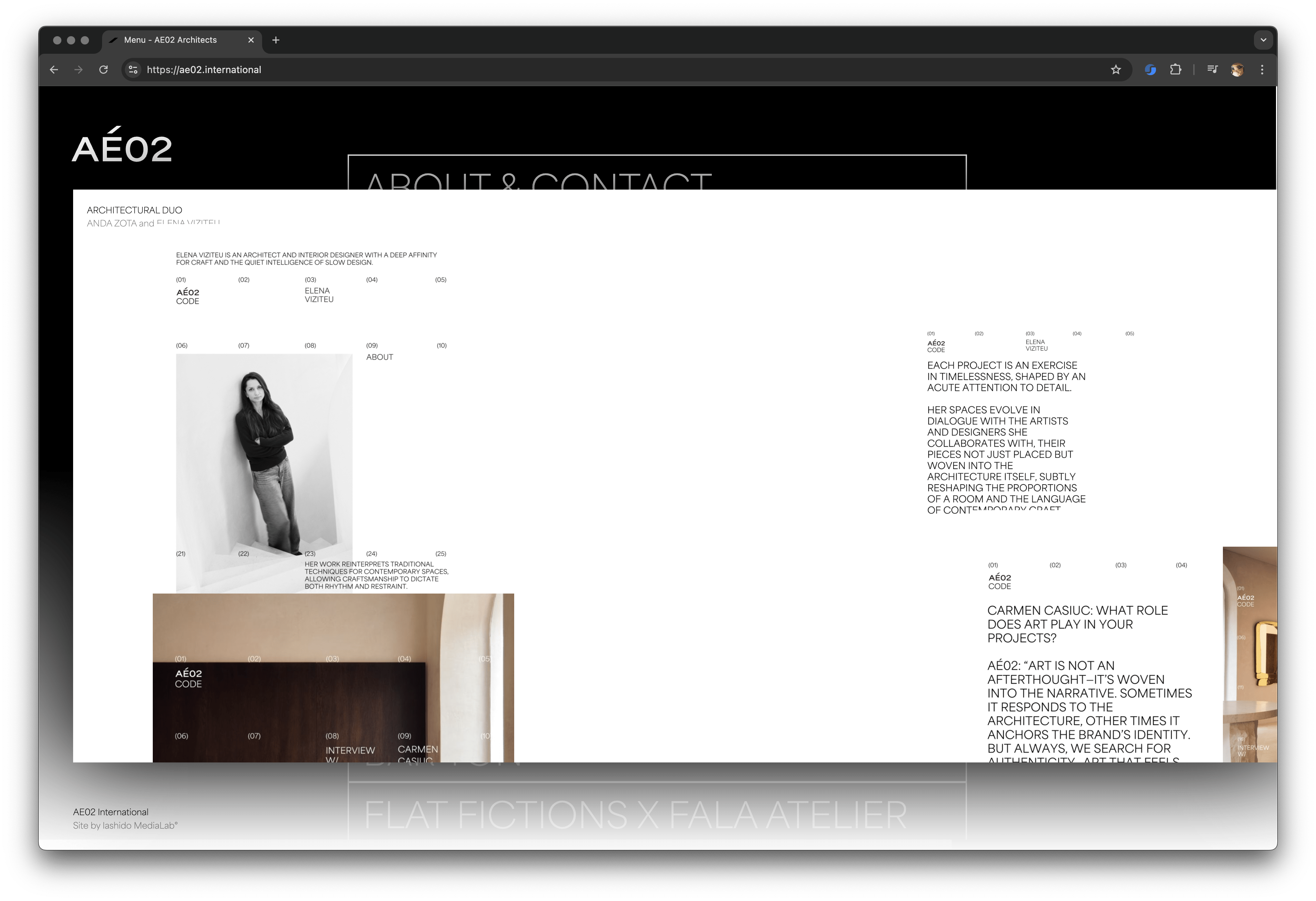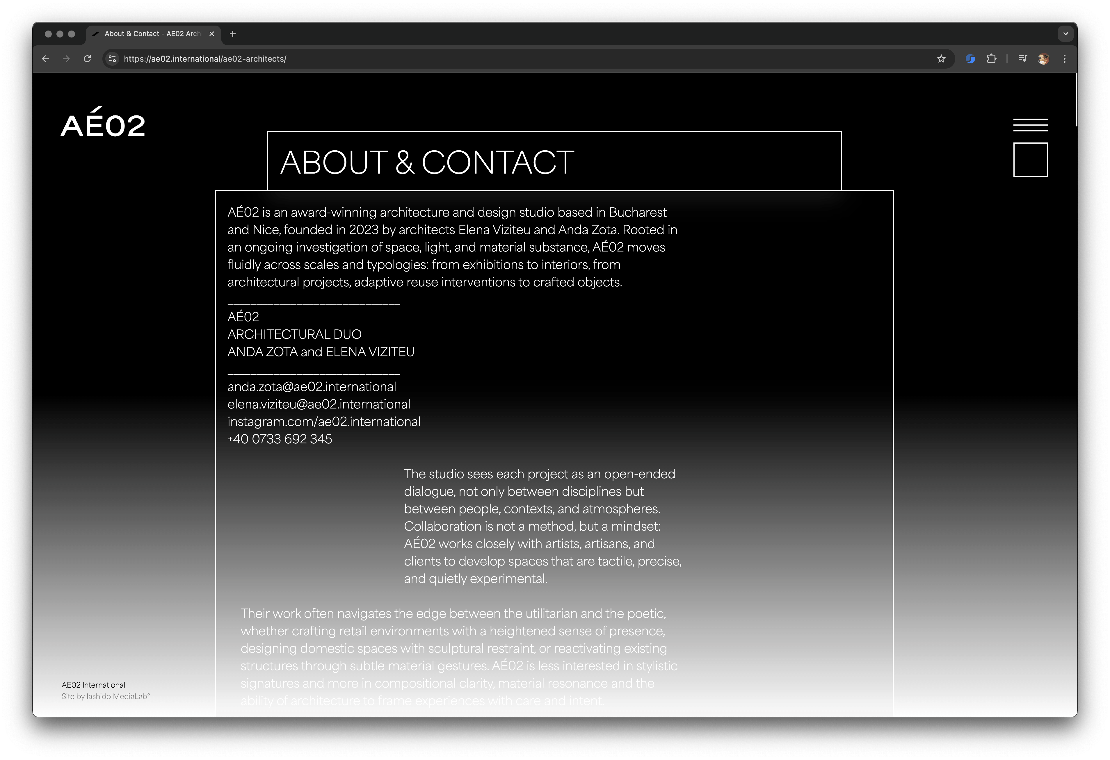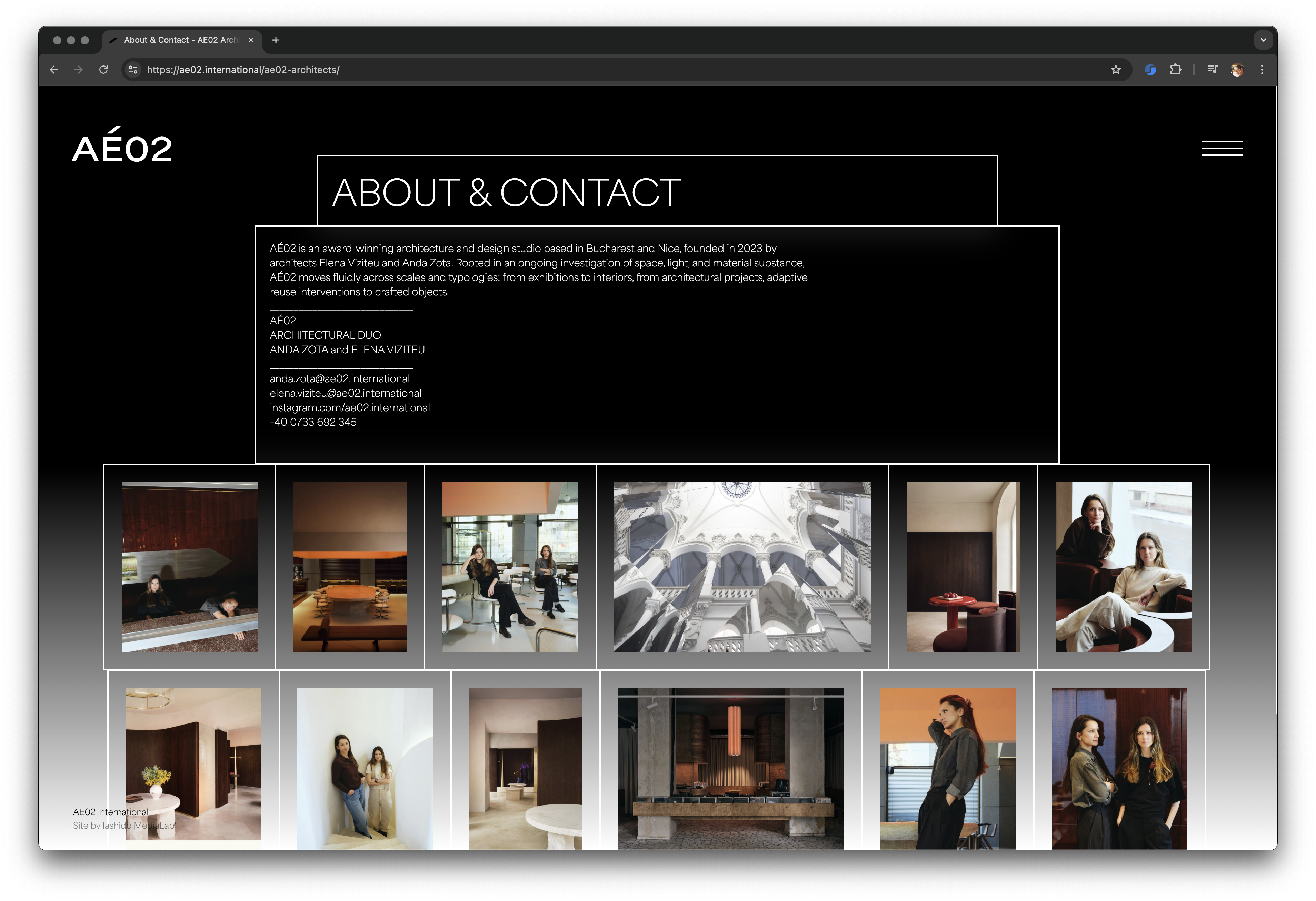 AÉ02 is an award-winning architecture and design studio based in Bucharest and Nice, founded in 2023 by architects Elena Viziteu and Anda Zota. Rooted in an ongoing investigation of space, light, and material substance. https://ae02.international